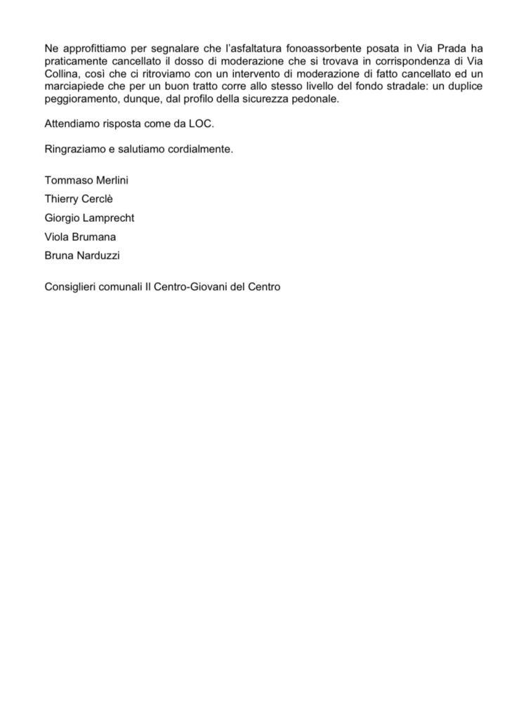 Interpellanza 2025 sul passaggio pedonale in Via Prada